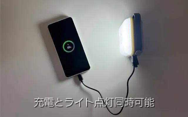 ライト点灯と充電が同時可能、夜間や停電、災害時に最適。