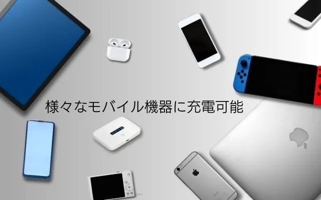 スマートフォン(iPhone、Android)をはじめ、iPod、タブレット、カメラ、ゲーム機器など様々な機器に充電できます。
