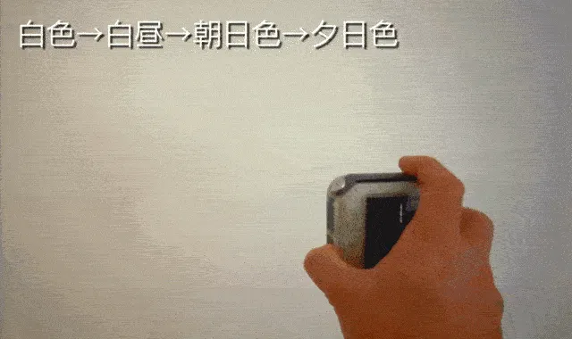 ※照明色モード(各白色モード⇒白昼色モード⇒朝日色モード⇒夕日色モード)へ