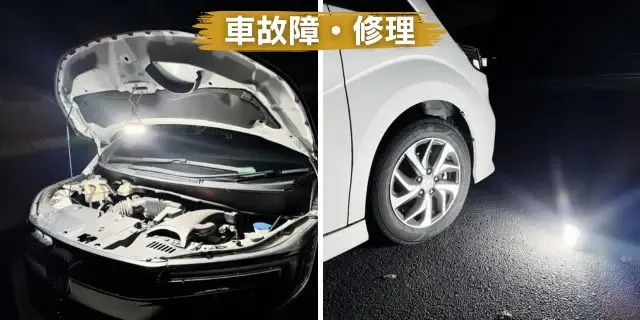夜間の急な車の故障やタイヤのパンクの時など、常に車内に備えて。