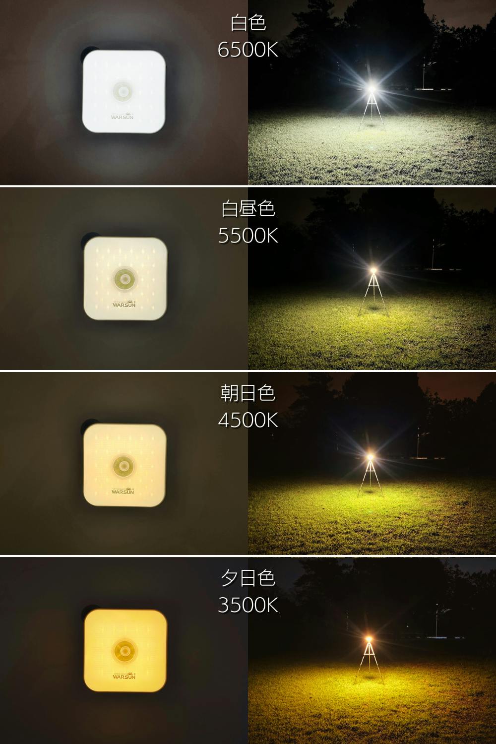 ランタン照明パターン(白色・白昼色・朝日色・夕日色)