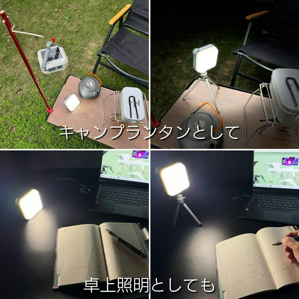 吊りランタン、卓上照明、三脚取付けも可能、多様な使用用途に対応します。