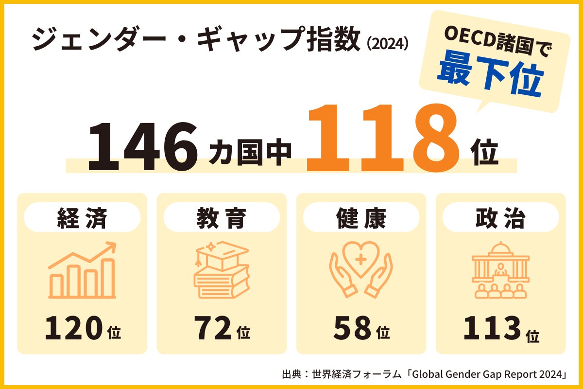 2024年の「ジェンダーギャップ指数」で、日本は146カ国中118位。