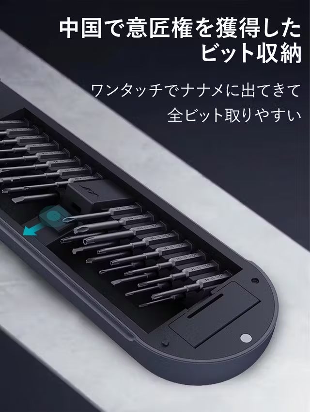 JIMISET 30Eのビットは、しっかりとしたマグネットによってカチッとはまる設計になっています。これにより、作業中にビットが外れる心配を減らし、作業がより効率的に進みます。特に、手が届きにくい場所や狭いスペースでの作業において、ビットがしっかりと固定されていることで、作業のミスを防ぎ、精度を保つことができます。