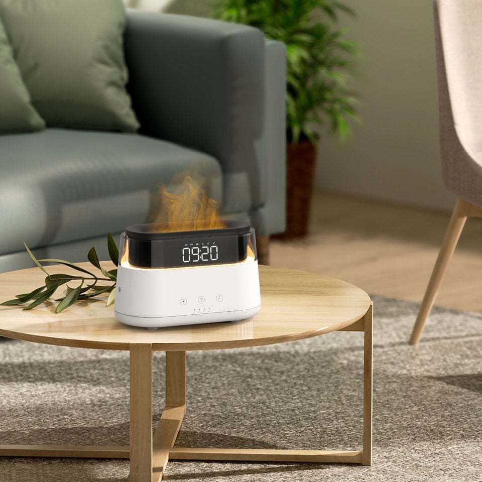 「FIRE-MIST」は、シンプルでありながら高級感のあるデザインが特徴です。コンパクトなサイズなので、どんな場所にもマッチし、インテリアとしても使えます。また、アラーム時計としての機能も搭載されており、毎朝リフレッシュした気持ちで一日をスタートできます。さらに、大容量の充電式バッテリーを内蔵しており、最大6時間の連続使用が可能です。電源を気にせず、リビングや寝室、外出先でも活用できます。その静音設計により、睡眠中や作業中でも音を気にする必要がありません。