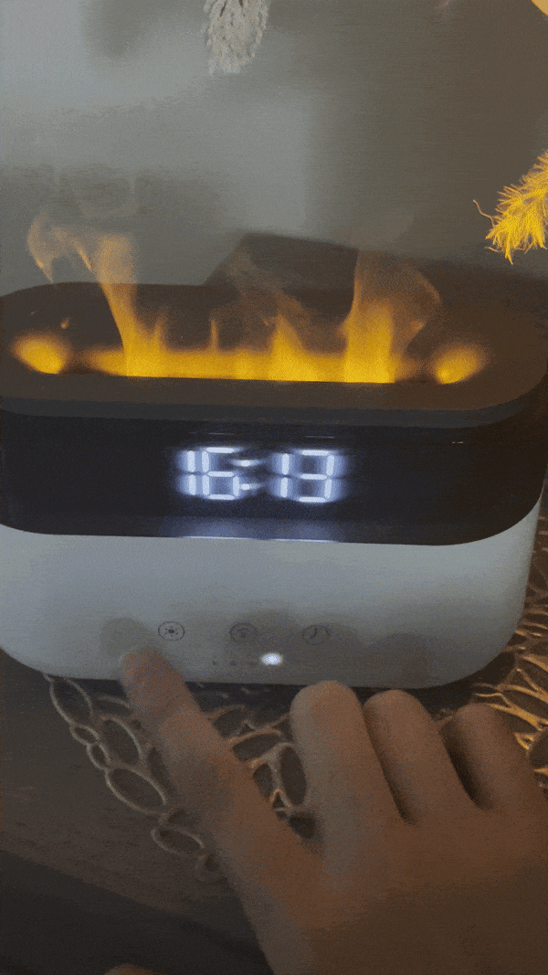 FIRE-MISTに搭載されたLEDライトは、炎のような揺らめき効果が特徴です。この効果により、まるで暖炉の前で過ごしているかのような、心地よくリラックスした雰囲気を作り出します。LEDライトは目に優しい柔らかな光を放ち、夜の時間を穏やかに演出してくれます。リビングや寝室にぴったりの暖かい空間を楽しむことができます。