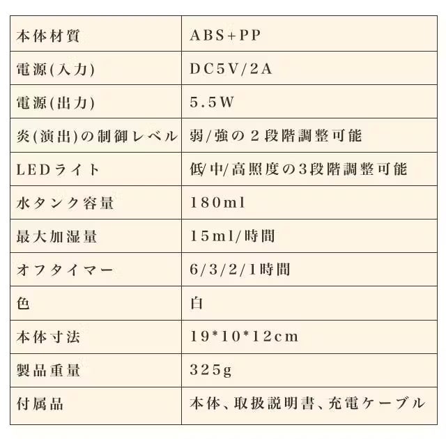 FIRE-MISTは、炎のようなLEDライトの温もりと、180mlの大容量タンクによる長時間稼働で、実用性と美しさを両立した製品です。湿度を保ち、香りを広げるだけでなく、空間を美しく演出するインテリアアイテムとしても活躍します。快適な空間づくりのために、ぜひFIRE-MISTを体験してみてください!