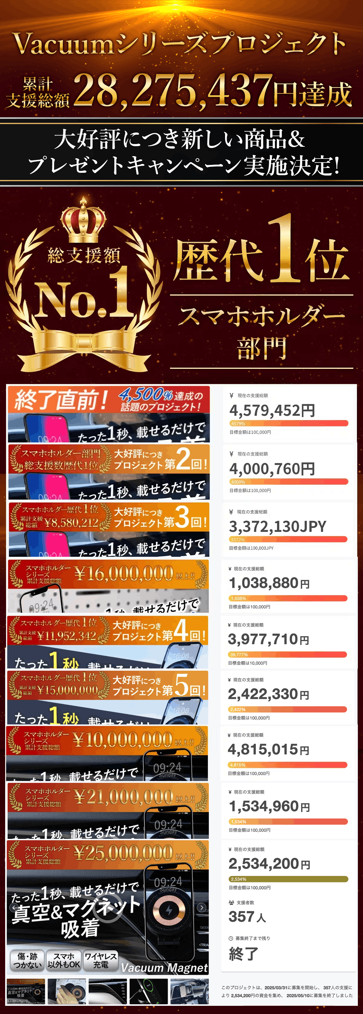 大好評をいただき大成功したVacuumシリーズを記念して、CAMPFIREだけの購入者限定プレゼントキャンペーンを実施します!ご支援者様の中から抽選で当たった方に、なんとVacuum Magnetをもう1つプレゼント!!