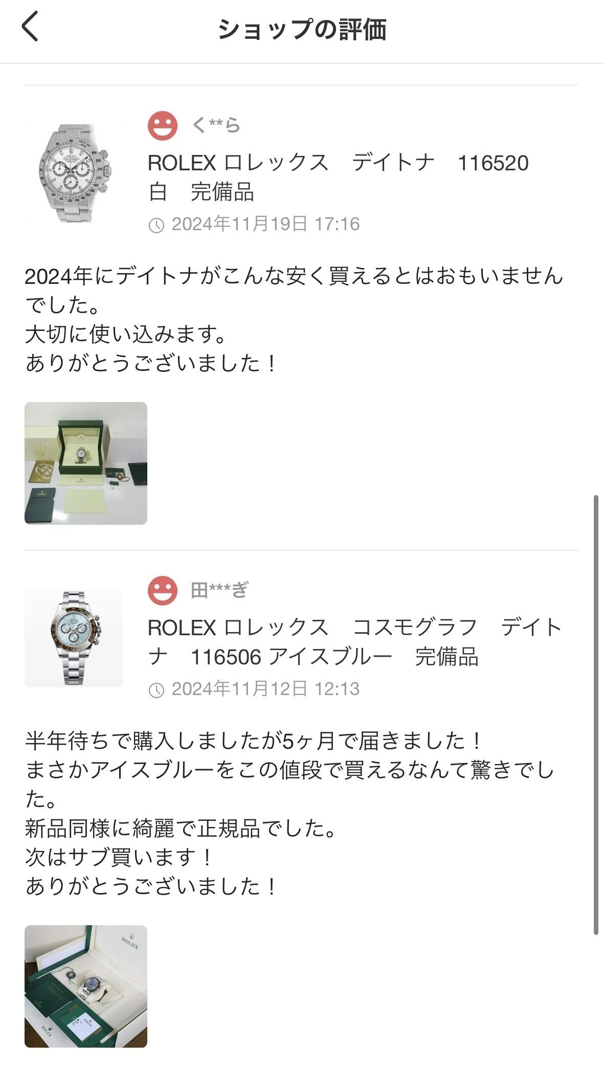2024/12/11 03:47リターンについて。来年の12月までに時計が買えるチケットをお渡ししております。ただしオールorナッシングなので350万に満たない場合は全額返金になります。350万に届くと購入したリターンのチケットが配布され弊社にて使うことができます。もし200万と150万を購入された場合は600万円分のチケットになりますので例1 サブマリーナ116610LV ハルクGMTマスターⅡ 126720VTNRGMTマスターⅡ 126710GRNR の3本を350万で買えることになります。この際実質3本で570万の時計を350万で買うことができます。220万お得に買うことができます。もっと言いますと3本で750万で売れるので400万儲けることが可能です。例2 GMTマスターⅡ 126719BLRO メテオライトを+100万で買うことも可能です。この際実質700万の時計を450万で買えたことになるので250万お得です。もっと言うと900万で売れるので550万儲けることも可能です。 もっと見る