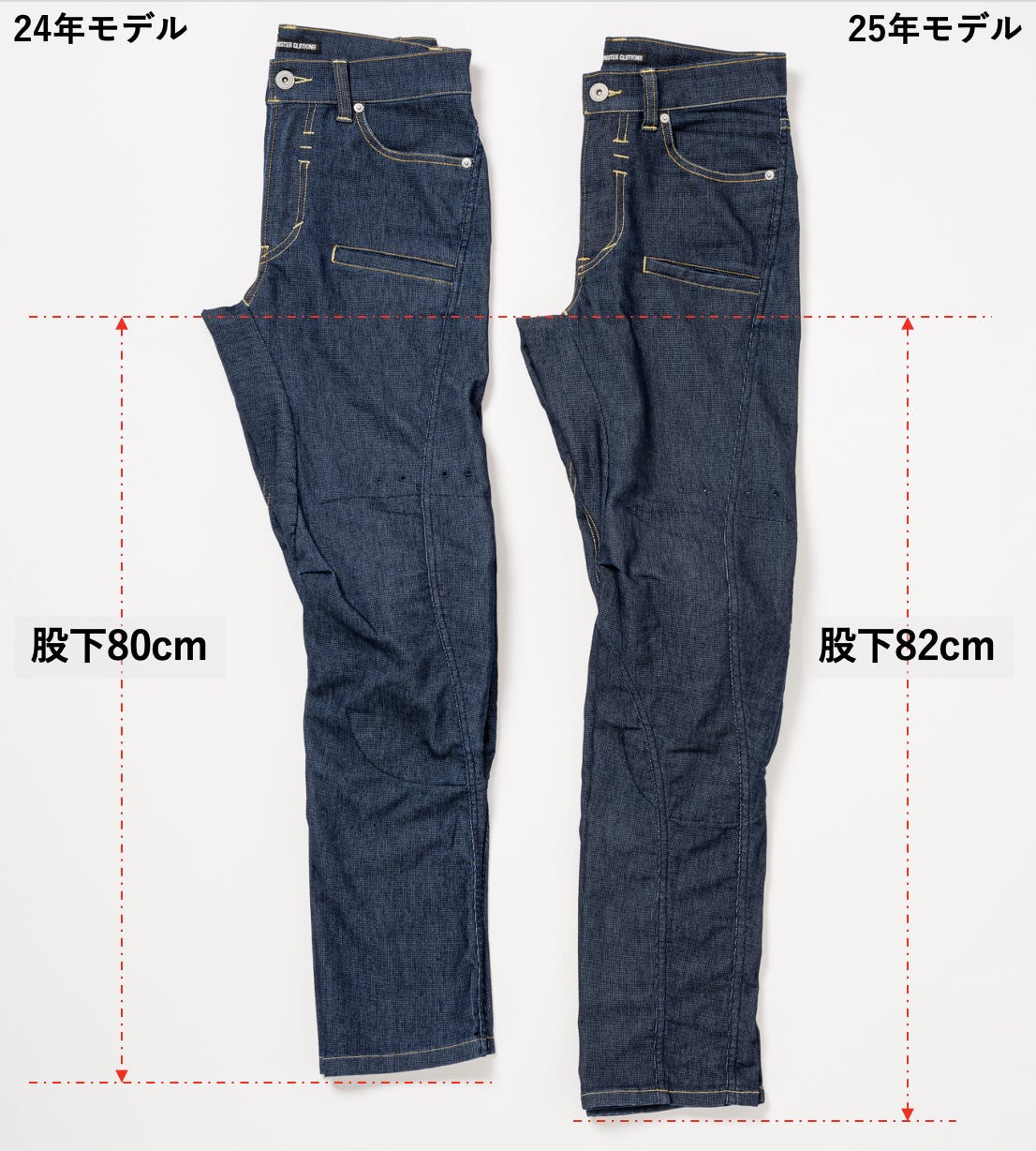 「BMCってストレッチあるけどタイトだよね〜【空冷式ジーンズ】がもう少し太かったらな〜」「股下がもう少し長かったらバイクに乗った時丁度良いんだけどな〜」というライダー多いと思います。お待たせしました(笑)25年モデルはシルエットが変更になり少しだけ太くなります。そして・・・股下が82cmになります。シルエットや股下で【空冷式ジーンズ】を諦めてたライダー・・・25年は着用できますよ(詳細は下記をご確認下さい)。
