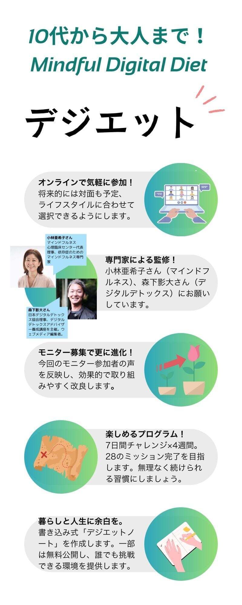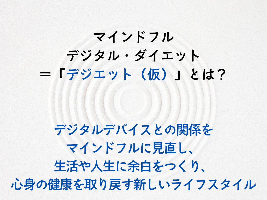 ここからはこのプログラム、「デジタルデトックス×マインドフルネス」=「マインドフル・デジタル・ダイエット(仮:デジエット)」についてより詳しく説明していきましょう。