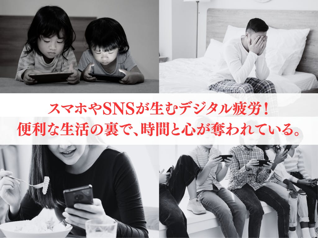 現代の大人たちもまた、仕事や日常の中で気づかないうちにデジタルデバイスに多くの時間を割いています。メールチェックやSNSの更新、業務管理などで、仕事と私生活の境界が曖昧になり、慢性的な疲労や集中力低下を感じている人も多いのではないでしょうか。
