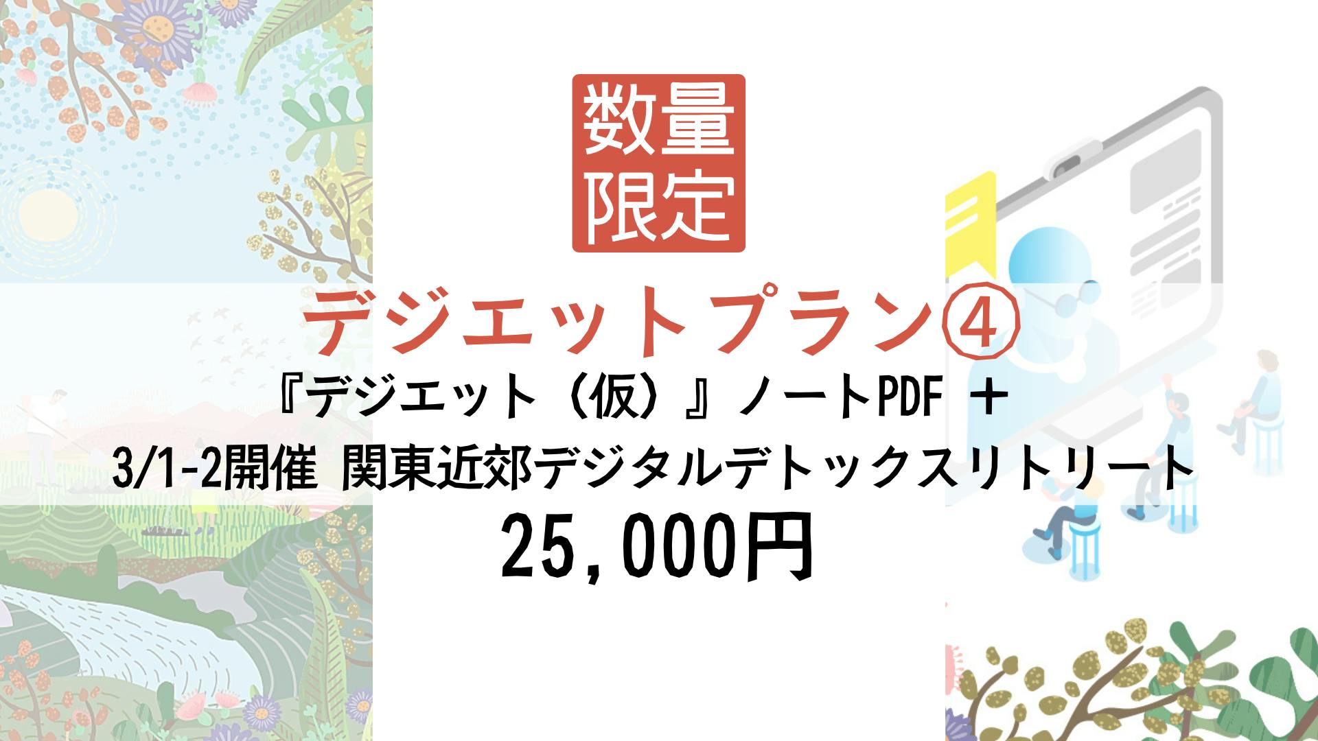●デジエット体験会リターン4:25,000円デジエットプラン④ 数量限定:関東近郊リトリート(2025年3月1日₋2日)