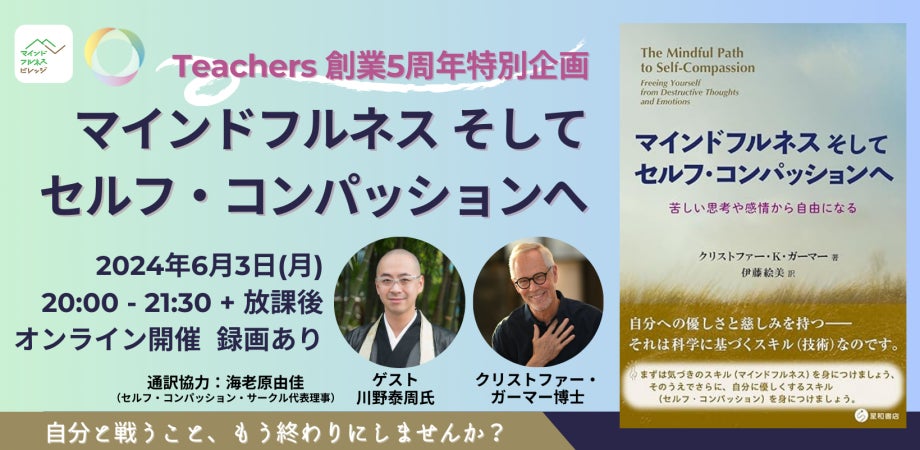 二つ目が、創業5周年記念イベント『マインドフルネスそしてセルフ・コンパッションへ』です。セルフ・コンパッションの第一人者であるクリストファー・ガーマー博士をお迎えし、川野泰周氏(精神科医・臨済宗建長寺派林香寺住職)との対談を企画しました。ガーマー博士による深い知見と川野氏の仏教的視点が融合した対話は、多くの参加者に新たな気づきと感動をもたらし、心のケアや自己理解についての重要性を再認識する場となりました。このイベントには350名を超える方々がご参加くださり、創業からの五年間を振り返るとともに、今後の活動の大きな指針を得ることができました。これまでの歩みを支えてくださった皆さまへの感謝と、未来への新たな挑戦を誓う、大きな節目となる時間となりました。