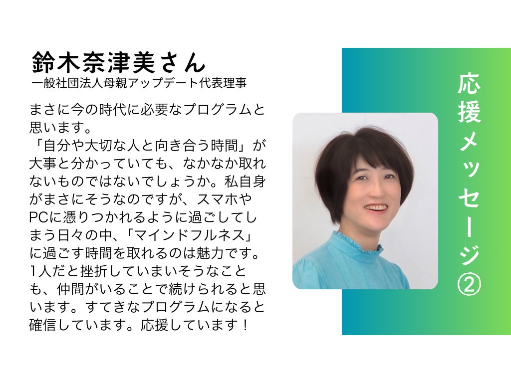 応援メッセージ② 鈴木奈津美さん(なつみっくす)