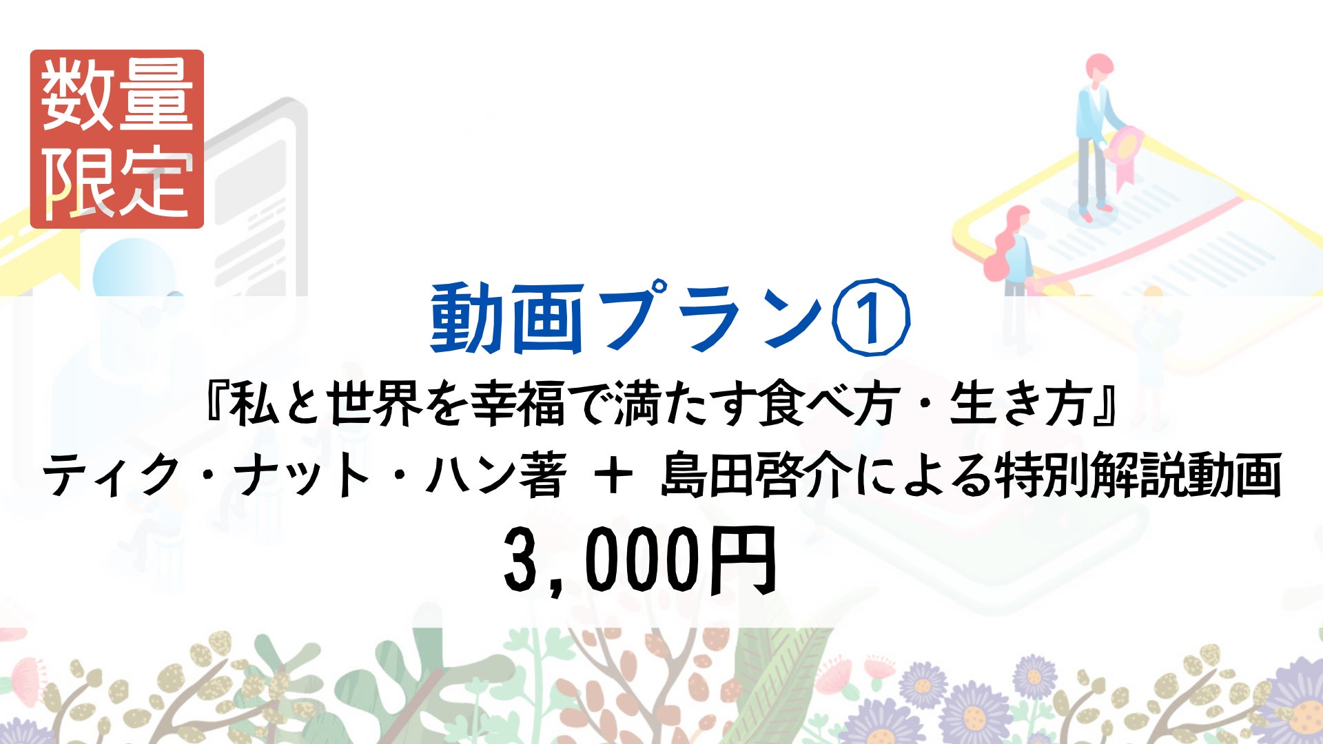 『私と世界を幸福で満たす――食べ方と生き方』ティク・ナット・ハン著の智慧と島田啓介による鋭い解説動画がセットに。食事を通じた心と体の調和を学び、新たな幸福の形を探る特別コンテンツです。