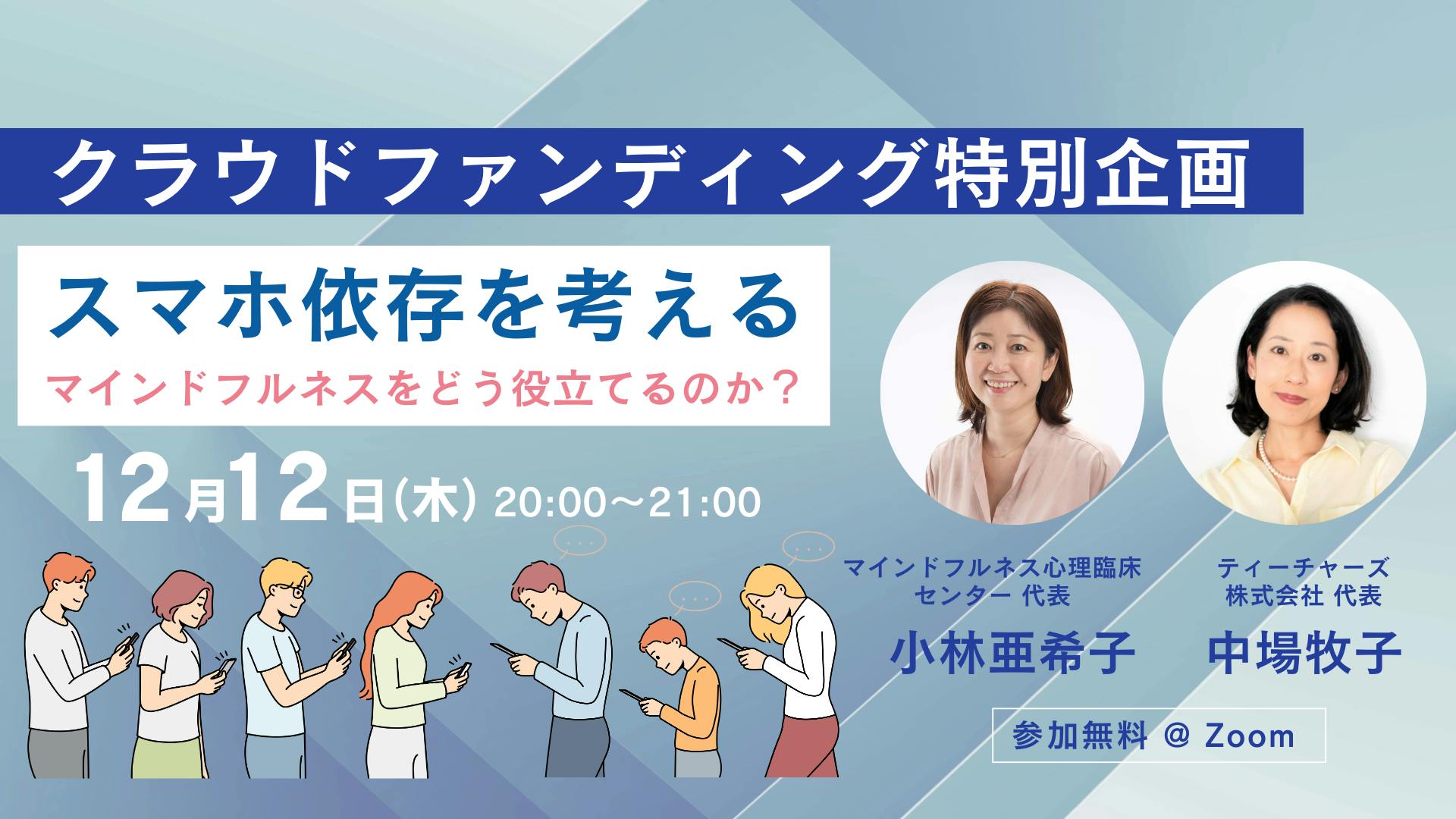 12月12日20時~、小林亜希子さん(マインドフルネス心理臨床センター代表)をお迎えして無料イベントを開催します。