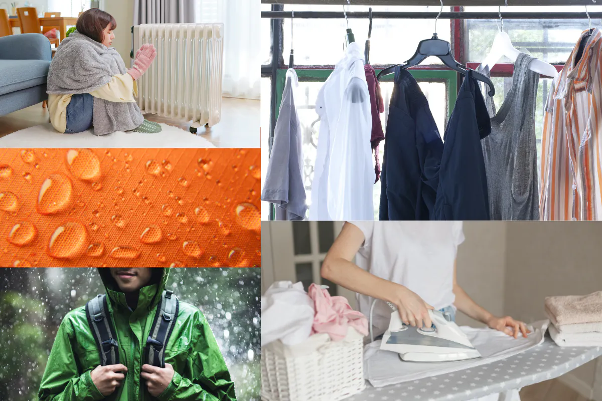 これらの機能はスポーツウエアとしてだけでなく、日常普段着としても有用な機能です。例えば、短時間で乾く速乾性は、暴風雨や長雨など天候不順の多い現代において大きな利点です。冷感や保温機能は、暑さの厳しい夏を快適に過ごすことができたり、冬には暖房の節約につながったりも。また、形状記憶機能を持ったシャツでは、アイロンを掛ける手間や電気代、クリーニング代も節約できます。