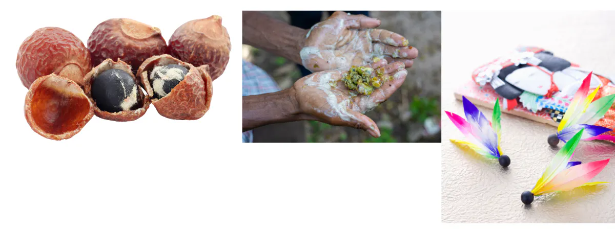 余談ですが、使用している精油やムクロジの外皮はインドから輸入しており、ムクロジ外皮もエコサート認証取得済みのオーガニック成分です。