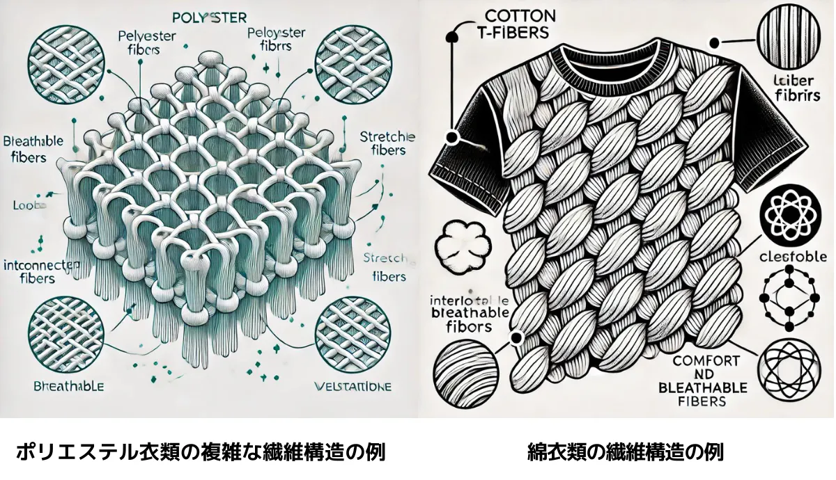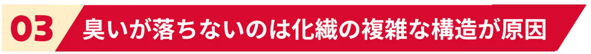 しかしながらこれら様々な価値の付加によって、元々複雑な構造の合成繊維がさらに複雑になり、汗や脂などの汚れがより蓄積しやすくなっています。