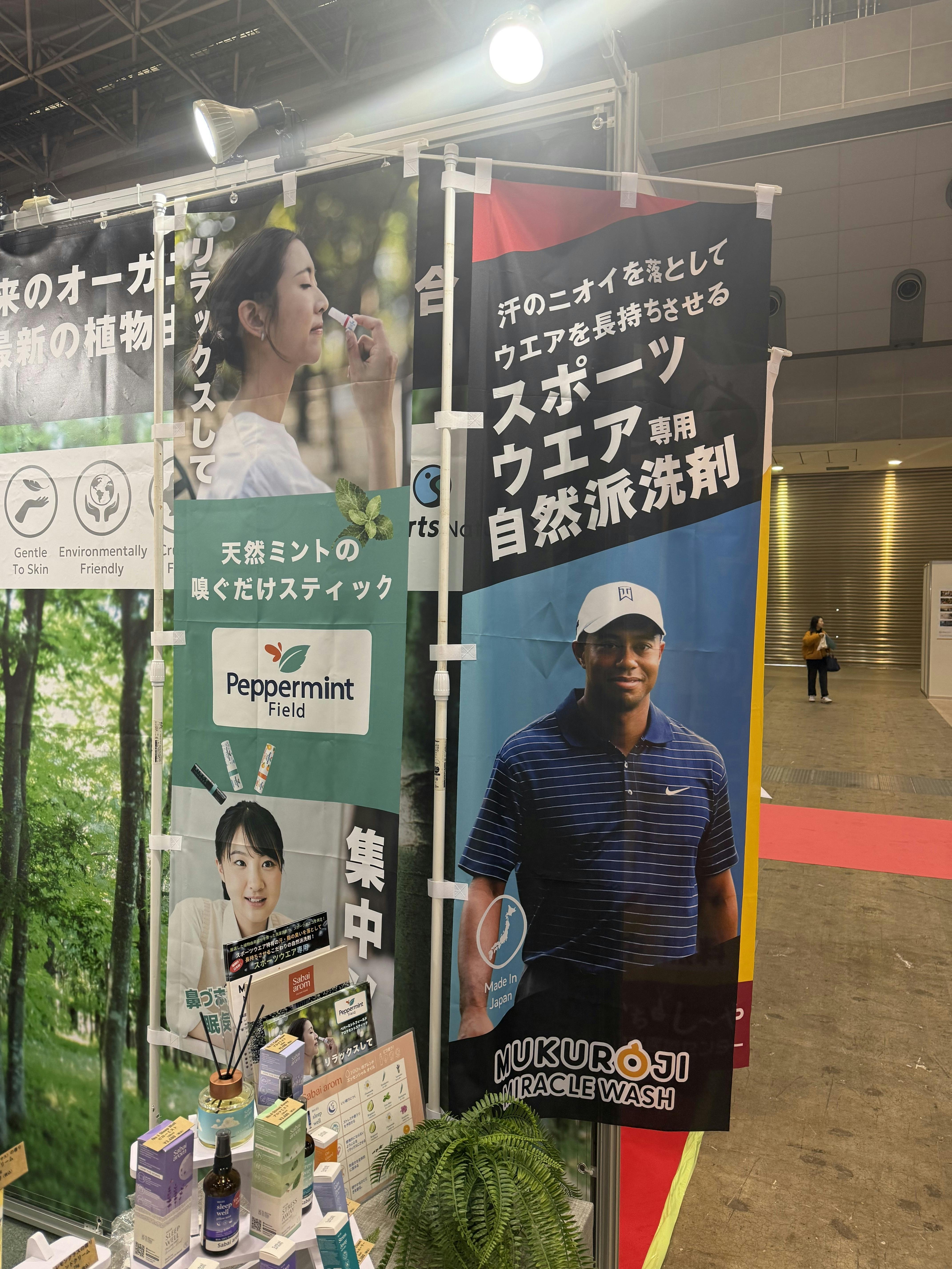 私個人のフェイスブックやナチュラルスタイルズのインスタグラムには上げておりますが、今週は東京ビッグサイトでの健康博覧会に出展しました。他の取り扱いブランドと一緒に展示しているので「ムクロジミラクルウォッシュ」は商品の一つのようになってしまっていますが、興味を持って下さる方は多く次に繋がりそうな感触を得ました。今までは自然食品店さんやセレクトショップさんとのお取引が中心でしたが、今回は様々なスポーツ関連の方々が足を止めてくださり、楽しく会話ができました。