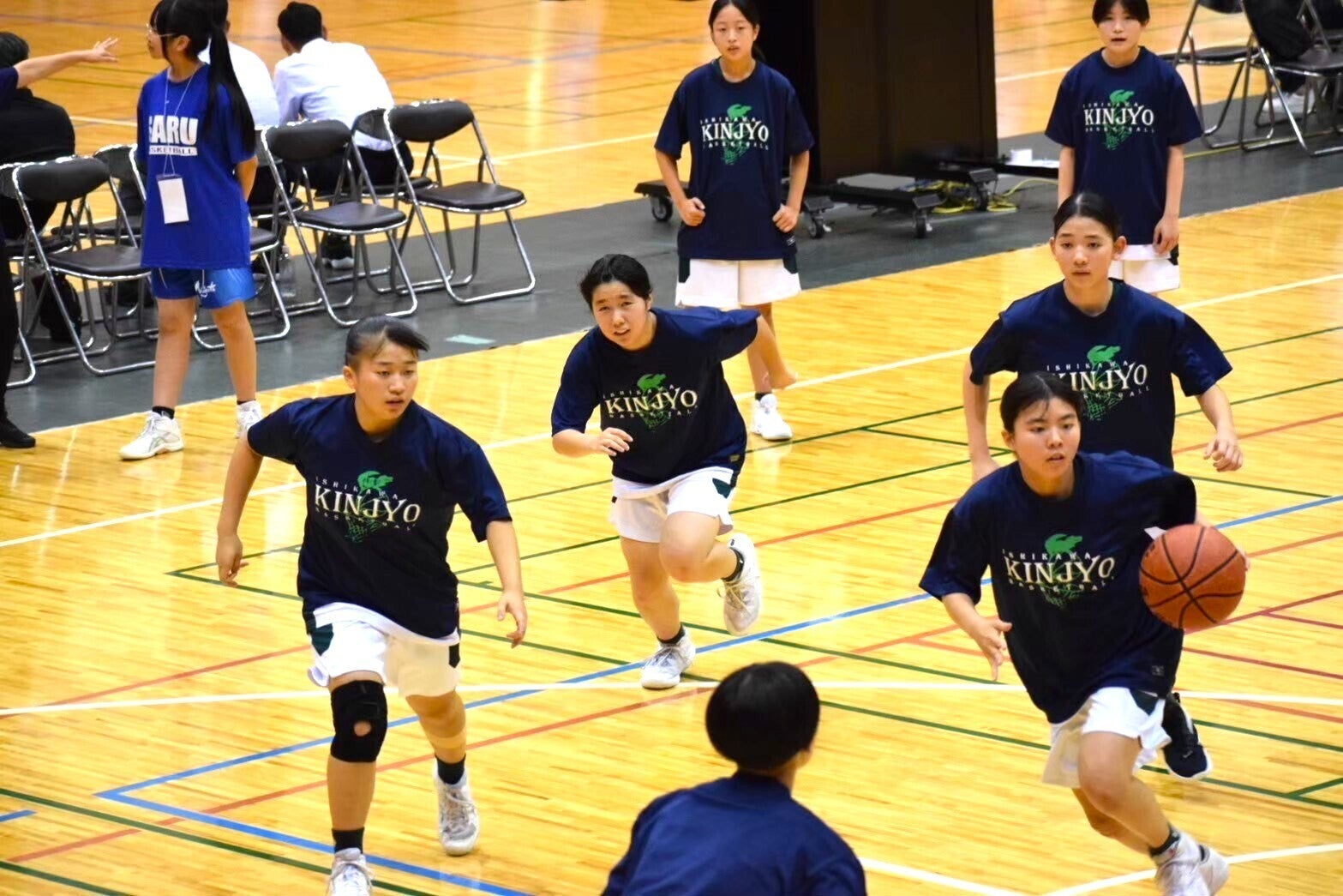 KINJYO NEXUSは、前述のとおりメンバーのほとんどが、地元中学校のバスケットボール部に所属しており、その多くが地元ミニバスチームの出身でもあります。