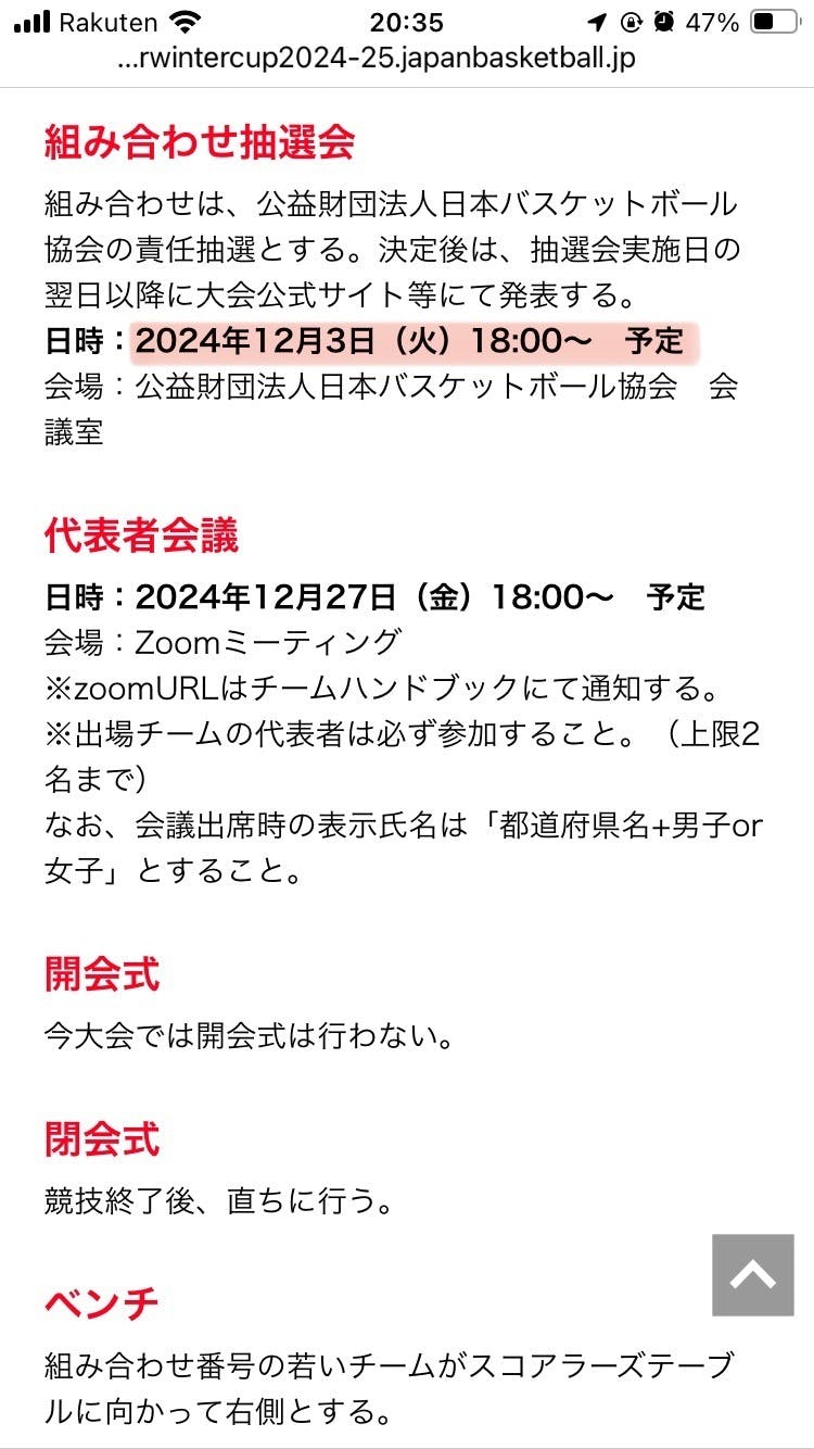 さて、今日はJr.ウィンターカップの組合せ抽選会の予定日でした!結果は、明日以降に大会サイトにて発表とのことです。