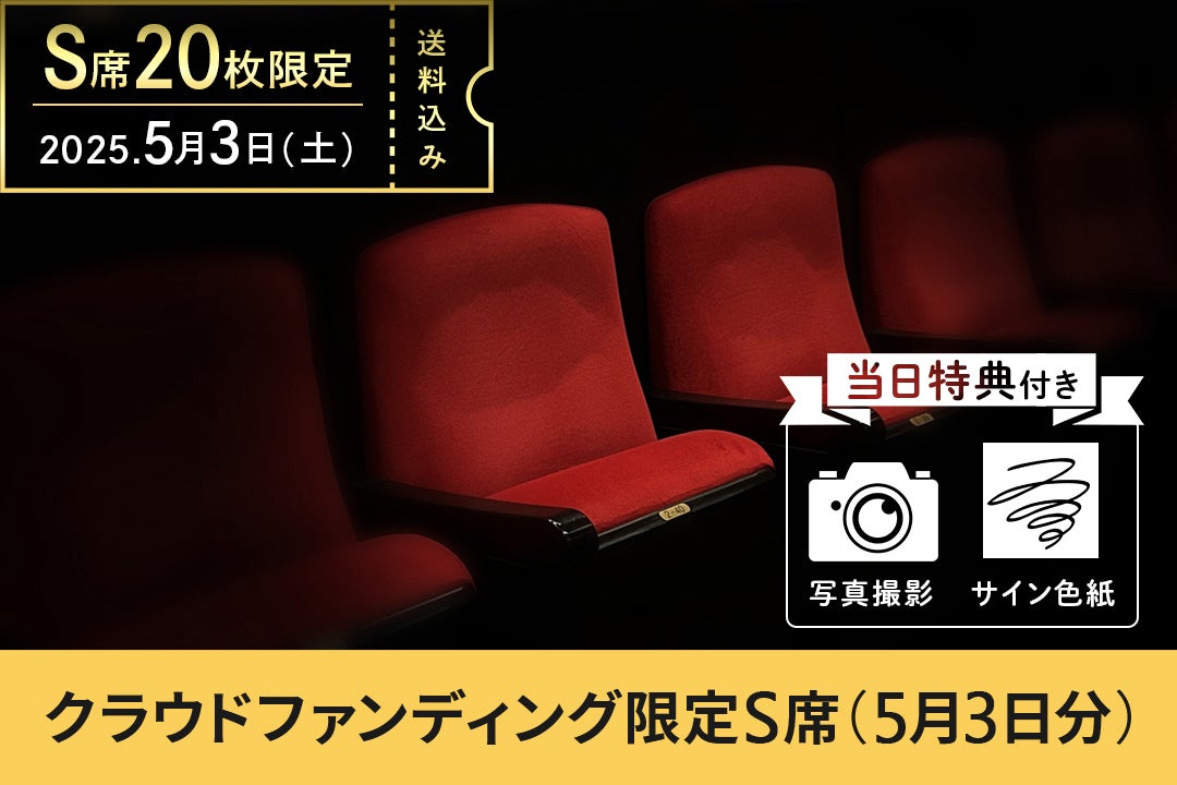 ササキとゴトウの第3回公演のクラウドファンディング限定S席チケットです。 20名限定で5月3日土曜日のS席エリアに入ることができます。