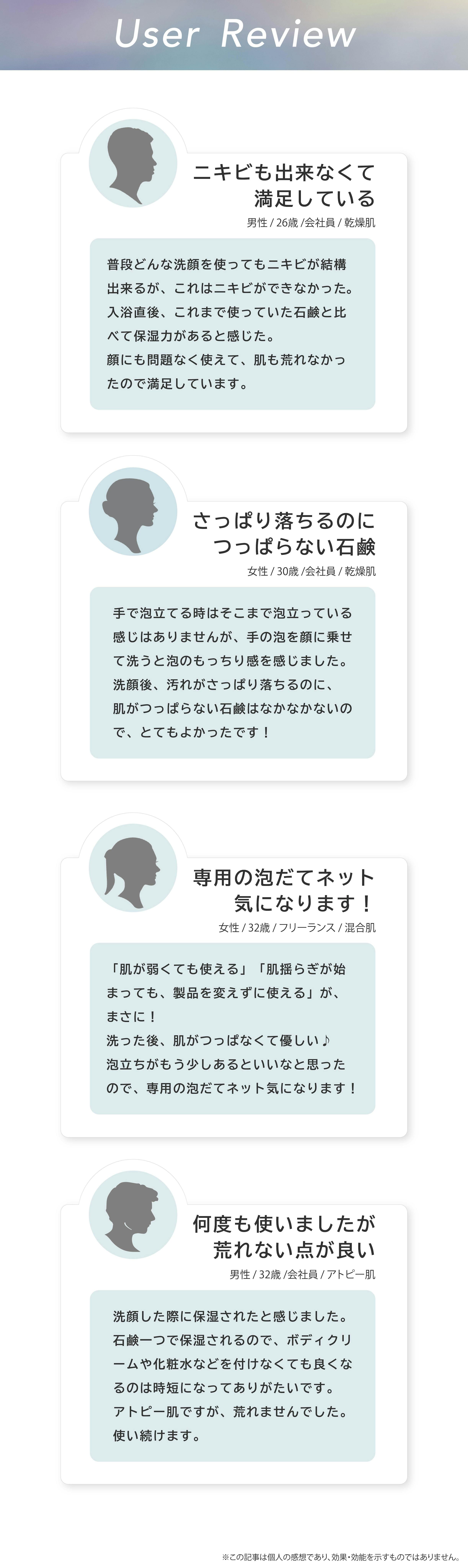 そこに着目し、スキンケアの第一弾として取り入れやすく簡単にケアができることから、固形石鹸を最初の製品として選択しました。