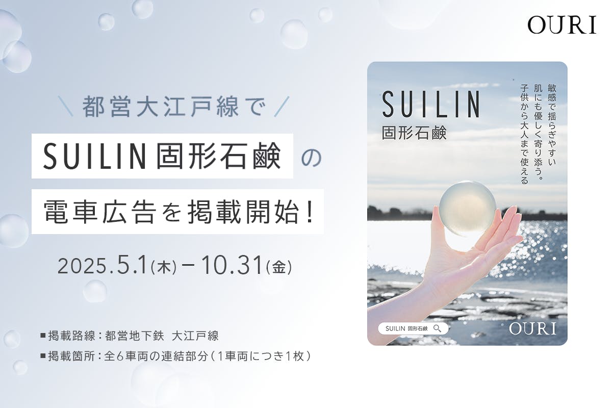 2025/05/01 11:00こんにちは!平田です!今日はOURIの大ニュースを2つお届けします!①ECサイト「SUILIN公式オンラインショップ」がオープンこのたび、SUILINの公式ECサイトがオープンしました!こちらからクラウドファンディングでたくさんの応援をいただき、ようやく、次の場所へ歩き出す準備が整いました!これからは、SUILIN固形石鹸をいつでもお求めいただけるようになります、、!ECサイトでは、こんなことができます!・SUILIN固形石鹸の単品購入(1個)・オリジナル泡立てネットとのセット購入クラファンの期間中に「もっと欲しかった!」と思ってくださった方も、「今知った!」という方も、ぜひのぞいていただけたら嬉しいです(^^)ちなみに・・・ECサイトは鉄火まきが構築してくれているのですが、、もうほんっっっっっとうにクオリティ高くSUILINの世界とSUILIN固形石鹸の魅力を表現してくださったので隅々まで一度、ご覧になってください、、!②都営大江戸線に、SUILIN固形石鹸のステッカー掲載開始このたび、都営大江戸線の車内に、SUILINのステッカー広告が掲載されることになりました!クラウドファンディングを通じてたくさんの応援をいただき、こうして、またひとつ新しい景色を見ることができました。■掲載期間 2025年5月1日~10月31日■掲載路線 都営地下鉄 大江戸線 1編成■掲載箇所 6車両の連結部分(1車両につき1枚)■広告内容 『SUILIN固形石鹸』のステッカー広告を掲載※こちらに関しまして、詳しくはプレスリリースにてご確認くださいみなさまの熱い応援のおかげで、今日を迎えることができました。心から、ありがとうございます。ECサイト、都営大江戸線、どちらもぜひ、日常にSUILIN固形石鹸を探してみてください♪ もっと見る