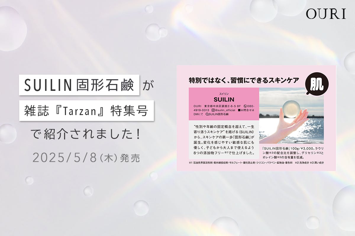 2025/05/08 11:00こんにちは。平田です!みなさまお久しぶりです。木々の緑がいっそう鮮やかさを増す季節となりました。本日は、皆さまに嬉しいご報告があります。このたび、雑誌「Tarzan」2025年5月8日発売号に、SUILIN固形石鹸が掲載されることになりました!プレスリリースはこちら全国に広がるメディアで、こうしてSUILINの名前が紹介されること。それは、応援してくださったみなさまと一緒にたどり着いた、大きな一歩です。■掲載情報掲載媒体:雑誌「Tarzan」発売日:2025年5月8日(木)特集テーマ:「顔は変わる、顔は変えられる。」(エイジングケア特集)SUILINが目指しているのは、「特別なことをしなくても、小さなことから自分を美しくすることができる」特別なことをしなくてもいい。ただ、日常の中で、自分を大切にする選択肢がそこにあること。今回の掲載を通して、また新たな誰かに、この想いが届くことを願っております。最後にクラウドファンディングを経て、たくさんの方と一緒に紡いできた時間が、こんな形で広がっていくこと心から感謝申し上げます。本プロジェクトの活動報告は、こちらで最終回となります。ちょうど1年前。5月に東京で開催されたビューティーワールドという祭典でOEM様より声をかけていただいたことからこのSUILIN固形石鹸は始まりました。たくさんの方に試していただきながら開発した固形石鹸。3〜4ヶ月で完成するはずの予定が、気がつけば8ヶ月が経っていました。やっと納得のいく口コミに達したころ。完成日とともに幕を開けたのがこのCAMPFIREのプロジェクトでした。そうなんです。準備段階では、まだ完成していなかったんです。サンプルの、小さな石鹸をにしまりさんにお渡しして記事を書いてもらい、なんとか用意できた完成同等のSUILIN固形石鹸2つを使ってりささんが撮影し、それでもネットが間に合わず、合成しながら鉄火まきにバナーを作ってもらいました。心強いメンバーと迎えた2月25日。あたたかい応援とともに幕を閉じた4月25日。開発から1年。SUILIN固形石鹸が多くの方の手に渡りOURIの想いを実現していくことを心から、嬉しく思います。年齢や性別を理由に何かをあきらめてほしくはない。概念にとらわれずに、シームレスに美容に触れられる世の中へ。特別なことをしなくても、小さなことから自分を美しくすることができる。そんな世界を、CAMPFIREからSUILIN固形石鹸を通して一歩踏み出していきます。ーーーーーーーーー改めて、この度はSUILINを見つけ、応援していただき、本当にありがとうございました。また、どこかでお会いできる日をOURI一同、心より楽しみにしております。今後の活動は↓リンクよりチェックしてください♪X→@OURI_officialInstagram→@suilin_officialSUILINオンラインショップ→こちらから2025年5月8日発売号の雑誌「Tarzan」は書店やコンビニなどでお買い求めいただけます!また、都営地下鉄 大江戸線にもSUILIN固形石鹸の広告ステッカー掲載中です!これからも、OURI・SUILINをどうぞよろしくお願いいたします!心から、感謝を込めて。OURI もっと見る
