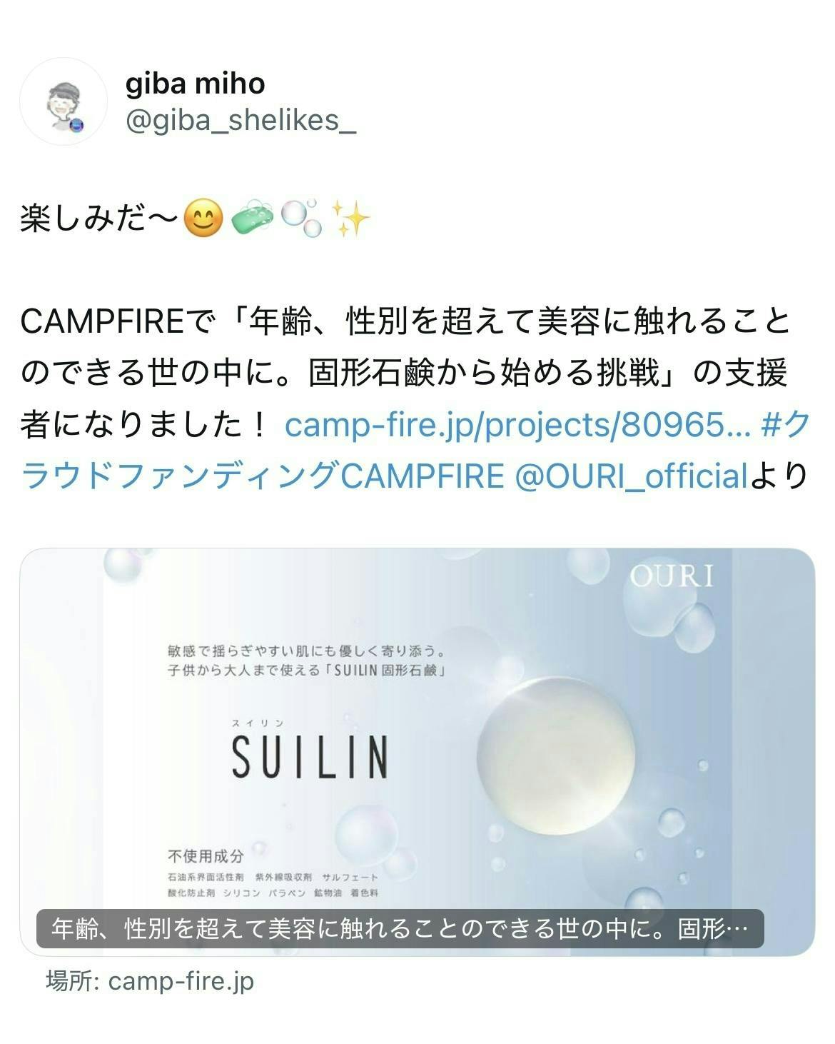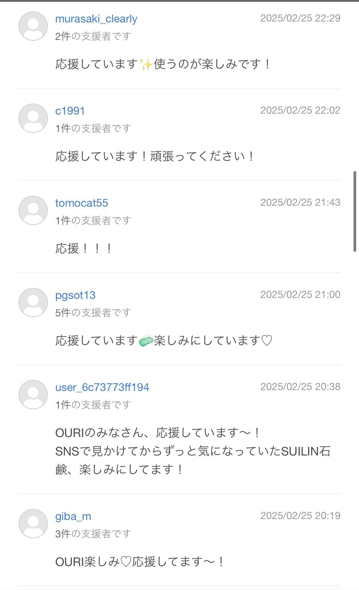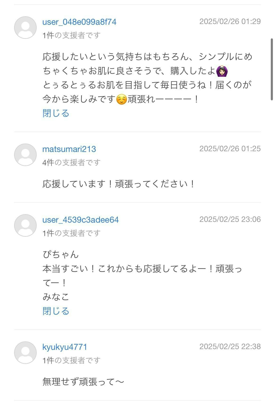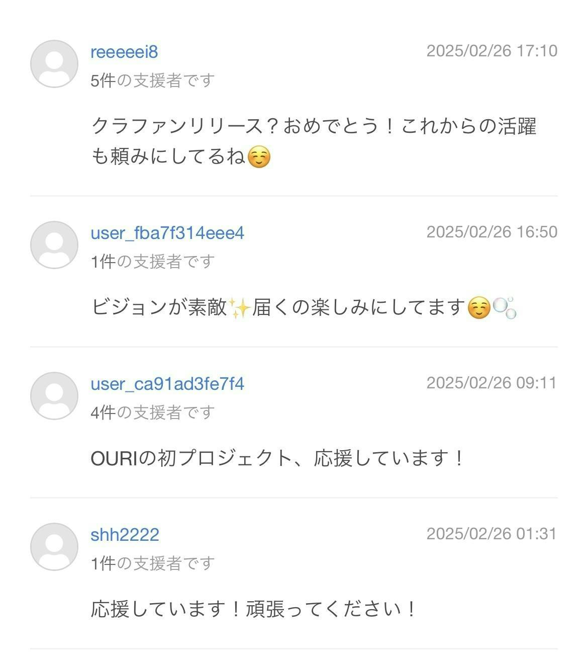 支援者からのコメントを掲載させいただきます。