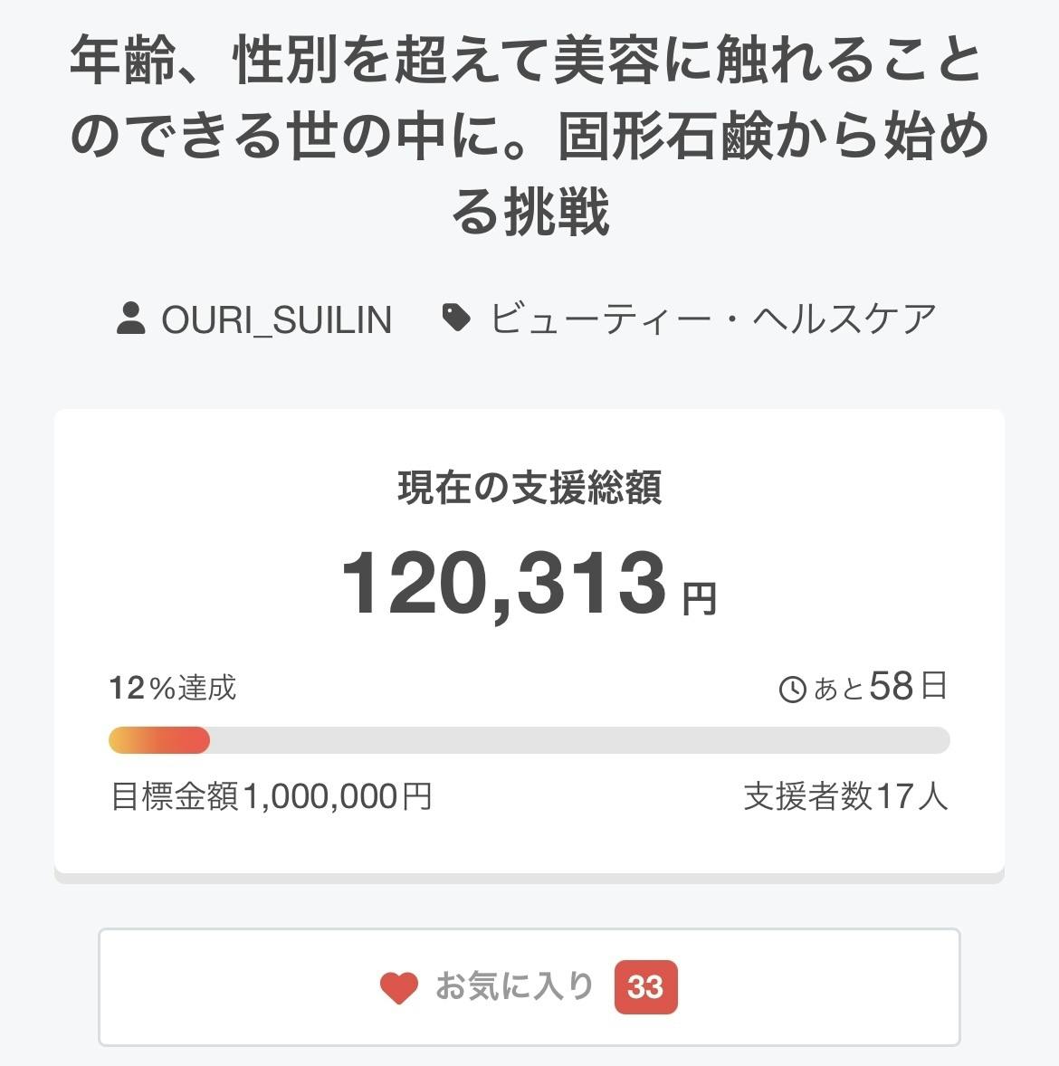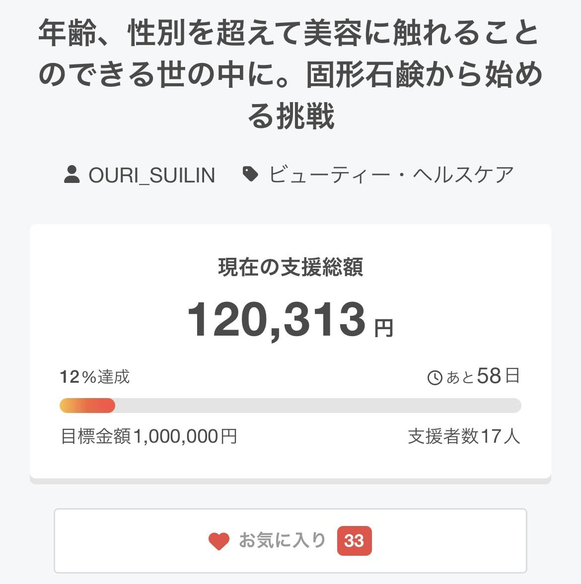 現在、開始24時間で目標金額12%に到達。