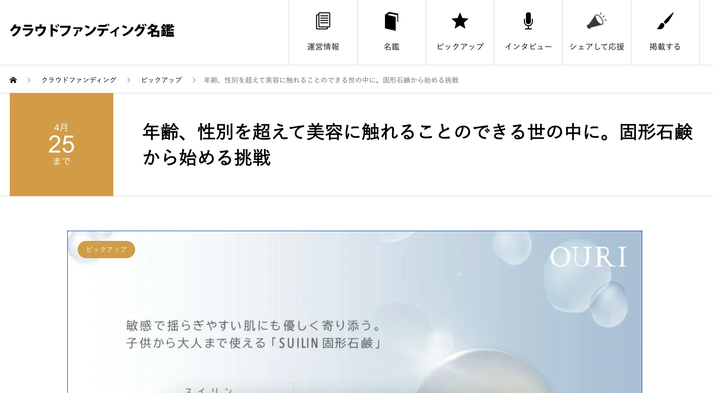 クラウドファンディング名鑑様にてプロジェクトを取り上げていただきました!