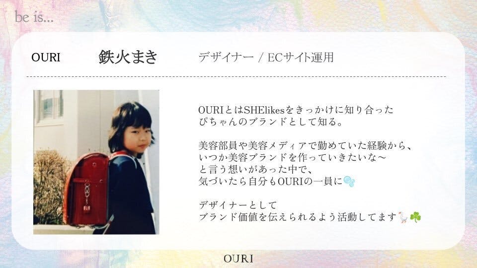 いつか美容ブランドを作っていきたいな〜と言う思いがある中、OURIの一員に。