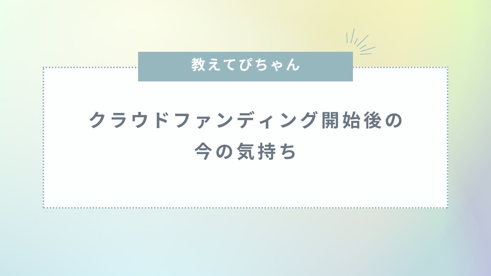 クラウドファンディングを開始してみて、ぴちゃんは今どんな事を感じているのか。