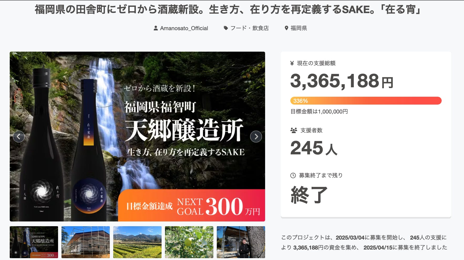 2025年4月15日、天郷醸造所のクラウドファンディングが無事終了いたしました。