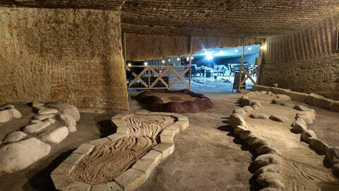 └洞窟内に川を流し、水の中を発掘!!