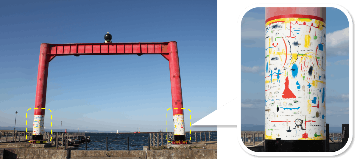 私たちの想い・願いをくみとってくれた荒井さんは、湾岸地域の歴史や豊かな自然から、独創的な2つの作品を制作してくれました。