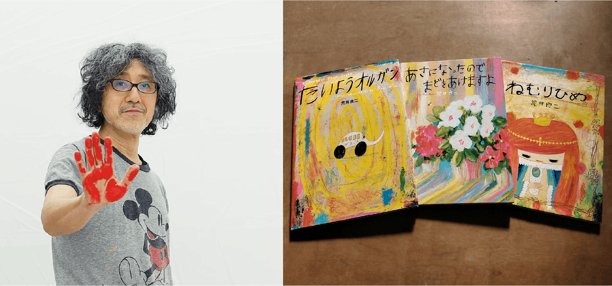 荒井良二さんは、『たいようオルガン』(JBBY賞受賞)、『あさになったので まどをあけますよ』(産経児童出版文化賞・大賞受賞)、『きょうはそらにまるいつき』(日本絵本賞大賞受賞)など、数々の魅力的な絵本を出している作家さんです。2005年には日本人として初めてアストリッド・リンドグレーン記念文学賞を受賞するなど、国内外で高い評価を得ていらっしゃいます。絵本以外にも、NHK連続テレビ小説「純と愛」のオープニングイラストを担当したほか、音楽、舞台美術など幅広い分野で活躍されています。