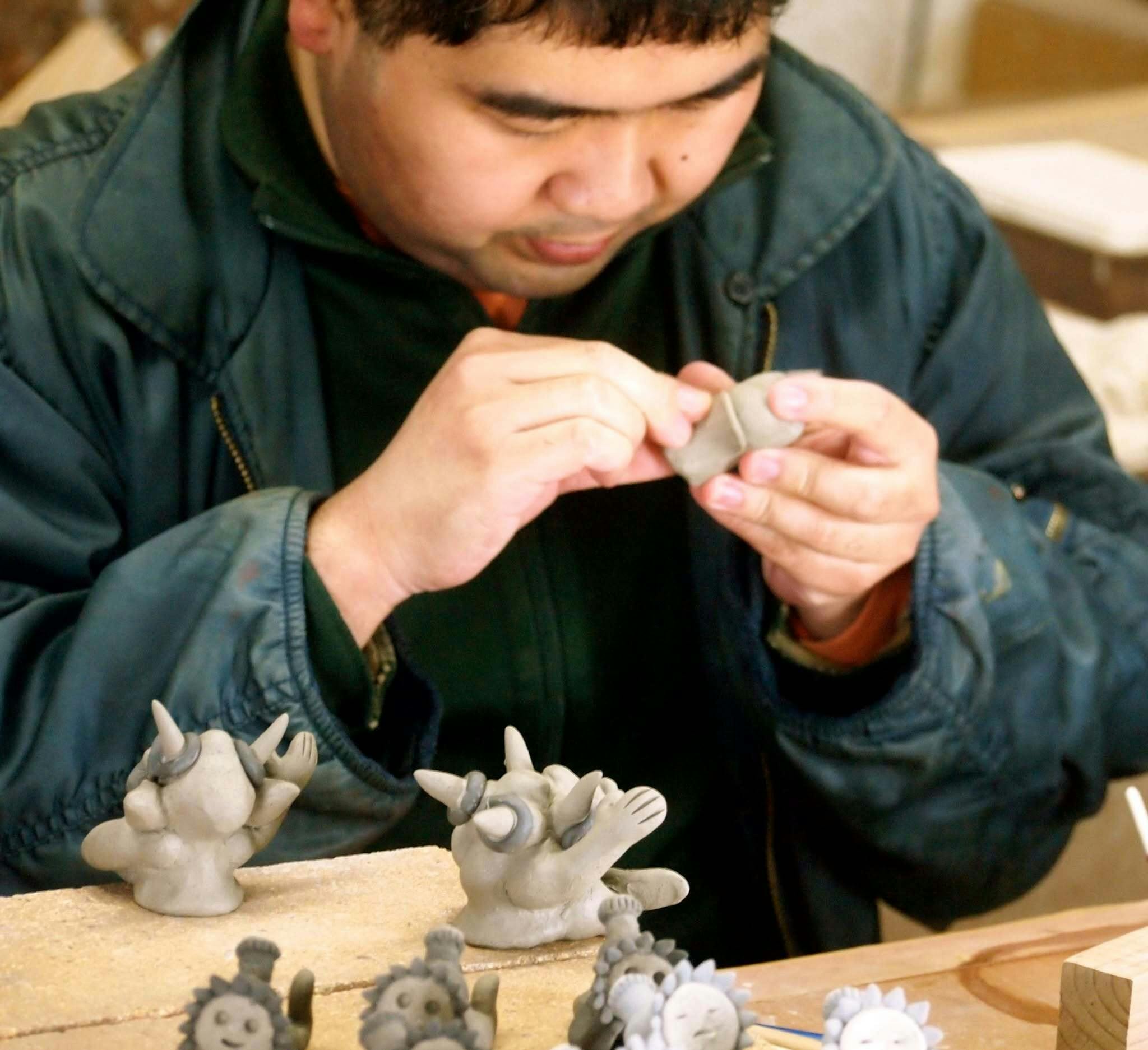 ・幼少期より言語でのコミュニケーションよりネンド造形に興味を示し知的障がいを伴う自閉症と診断される。