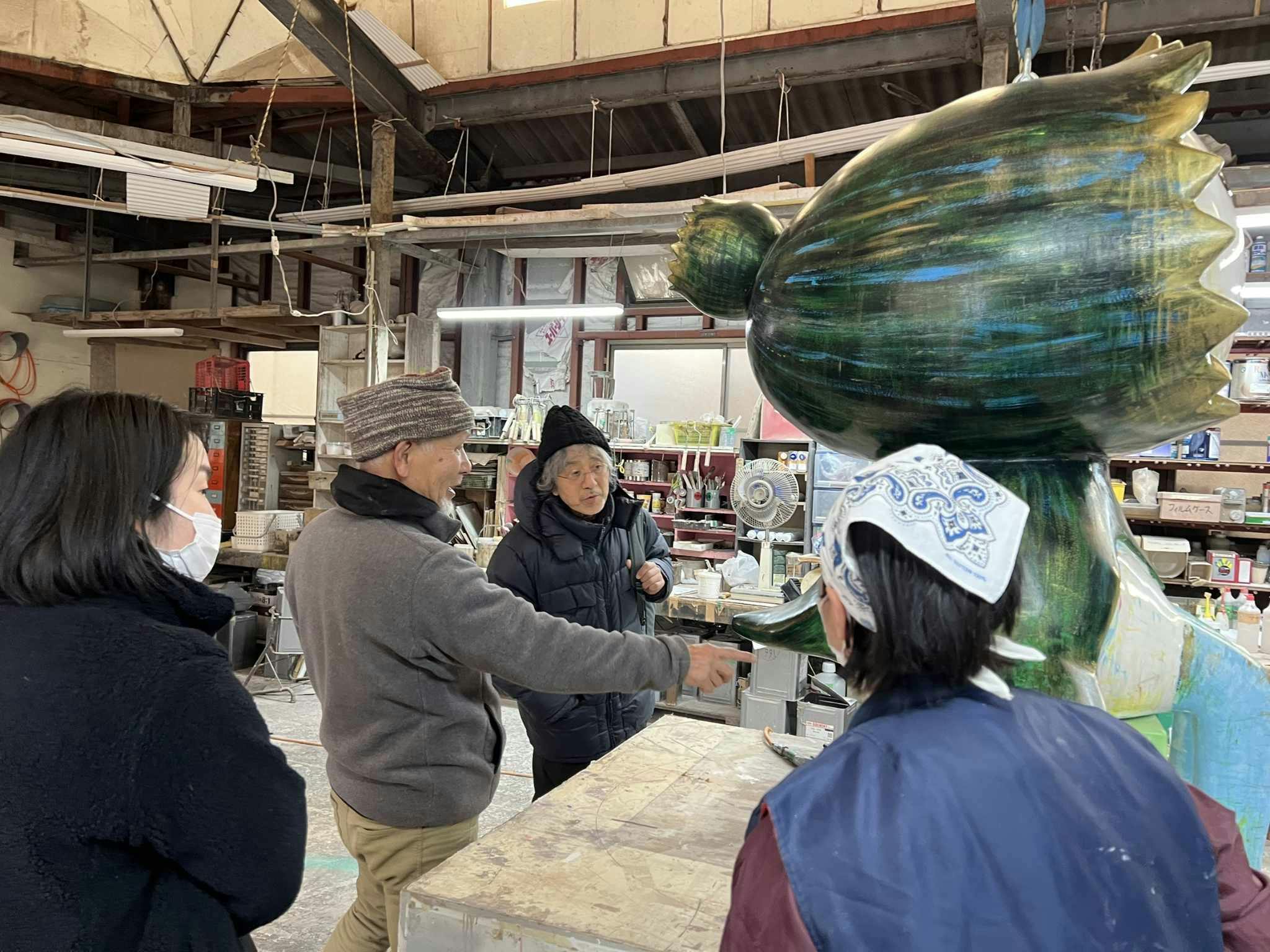 先日、かんたん港園の「赤い門」から取り外した『マッテルモン』の修復作業を、大分県日出町にある有限会社レンゾー工房 様にて開始しました。