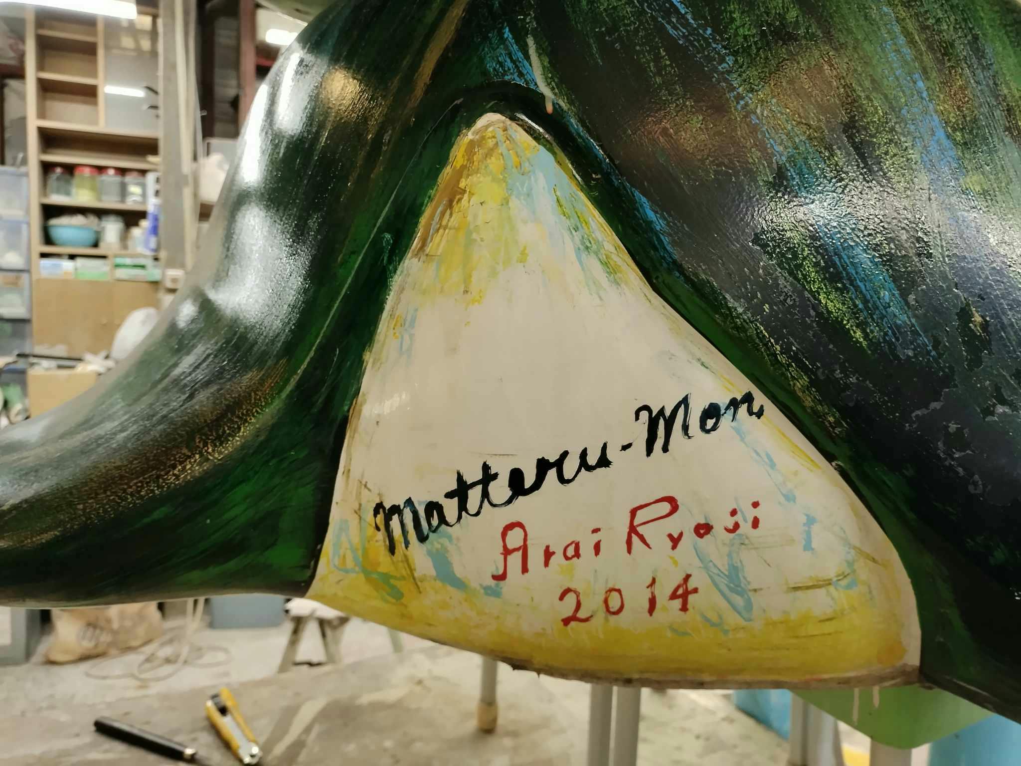 10年以上の間、西大分港の潮風を浴びていたマッテルモンですが、大きく色褪せることなく、荒井さんの繊細なタッチがしっかりと残っています。