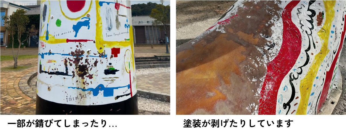 しかし設置からは10年が経過し、海沿いの激しい風雨にさらされて、2つの作品は悲しいほどにボロボロになってしまいました。