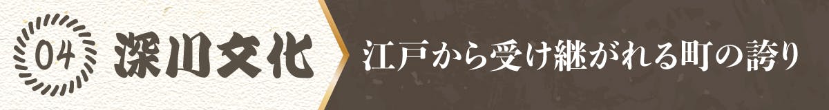 また、当地は「木場」や漁師町「深濱」を有し 、「辰巳風情」と呼ばれる独特の気風が育まれました。当時の漁師町としての伝統を今に伝える郷土料理「深川めし」は、地域文化を象徴するものとして「日本百名飯」にも選ばれています。