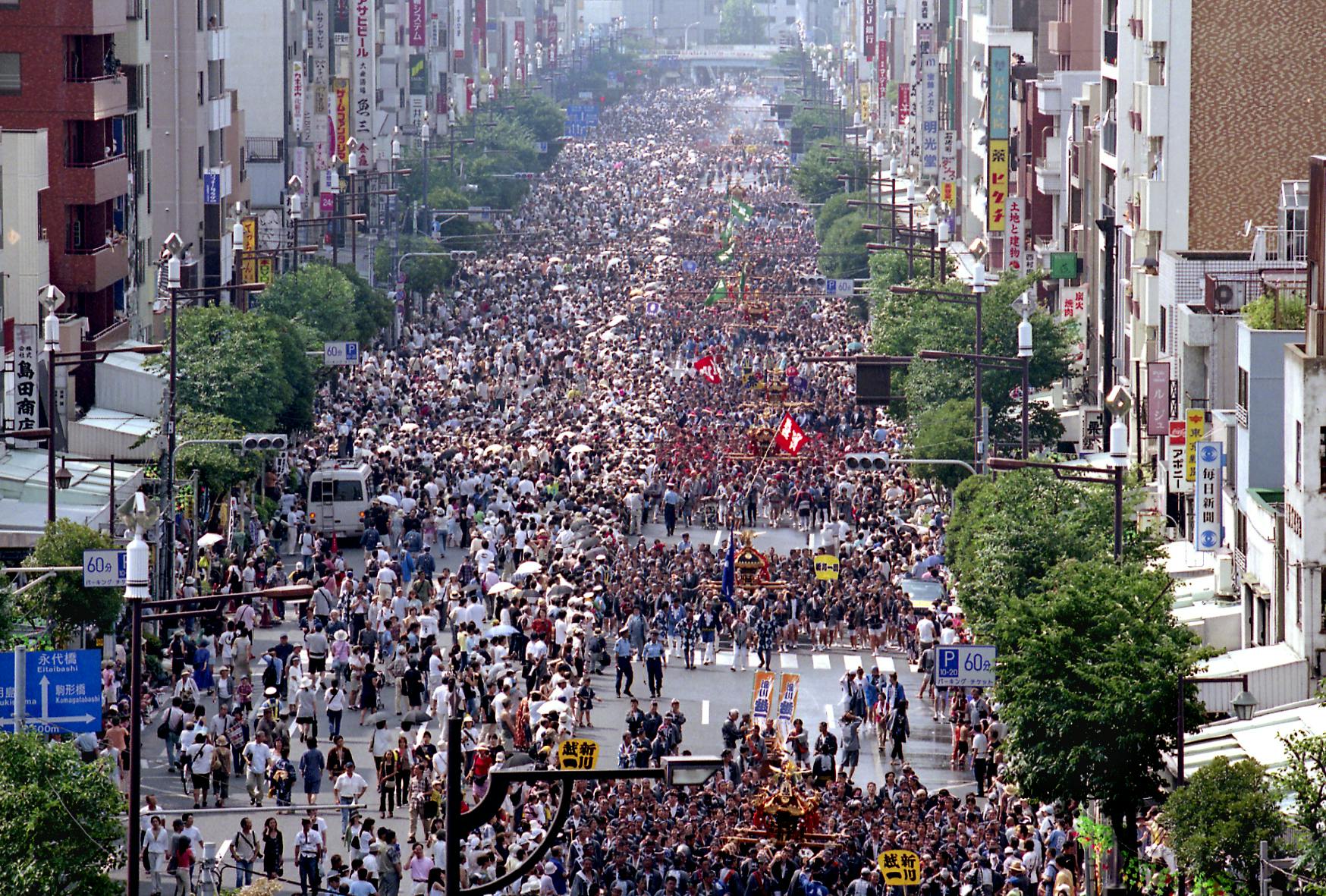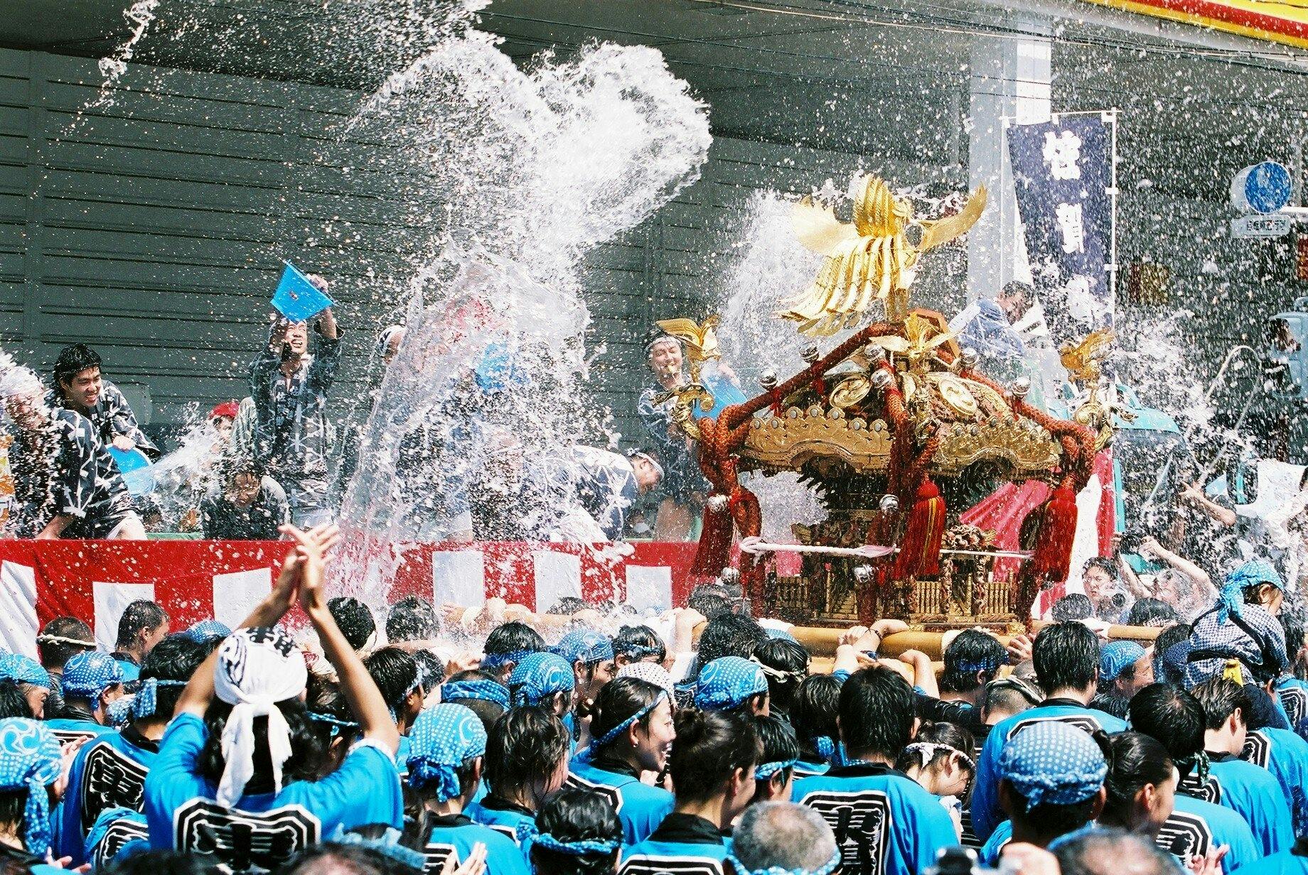 内容は1年ごとに「本祭り(鳳輦渡御・各町神輿連合渡御)」「二の宮神輿渡御」「子供神輿連合渡御」と異なり、特に「本祭り」では氏子各町から50基以上の大神輿が勢揃いし連合渡御が行われます。また、沿道から担ぎ手に水をかける「水かけ祭り」としても親しまれ、江戸時代初期から続く伝統文化の一つとして、地域観光の目玉となっています。