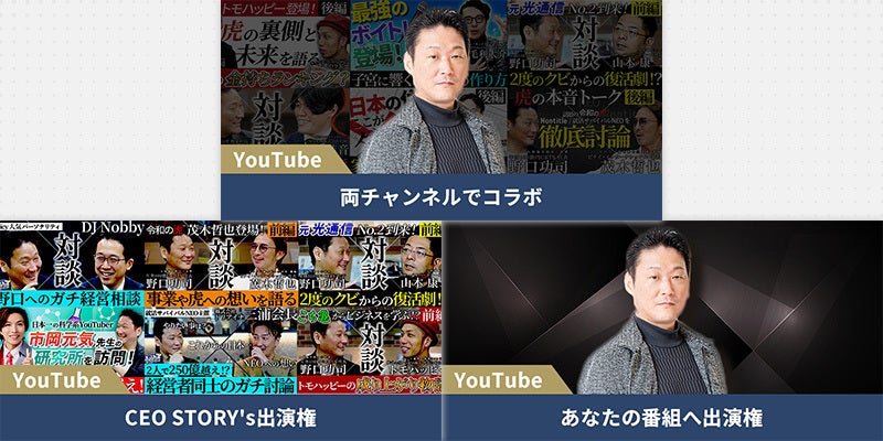 有望な人材の育成や出会いのために様々なメディアへ出演したり、自らX(旧Twitter)やYouTubeなどで、自分の想いや役立つビジネス情報を発信しています。