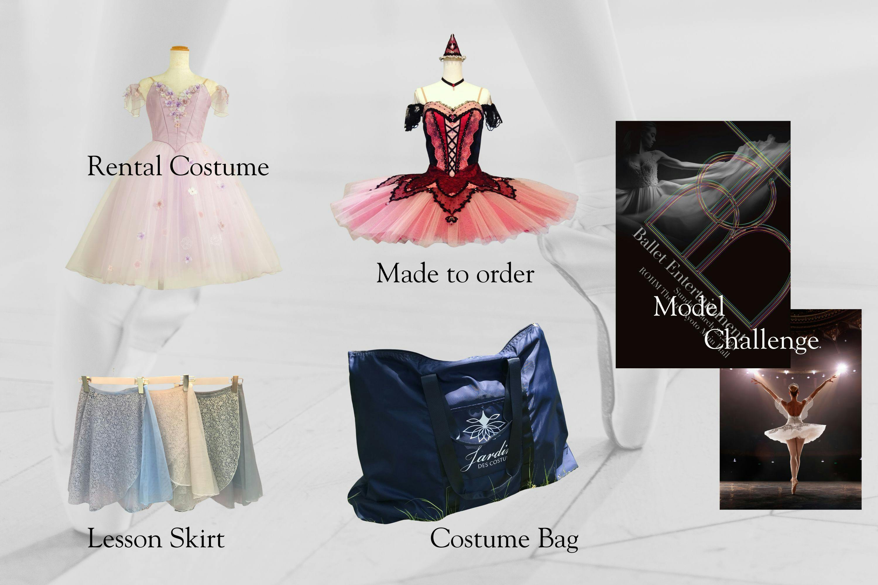 もう少し気軽に、普段使いのものをご希望なら、レッスンスカートや衣装専用バッグを。