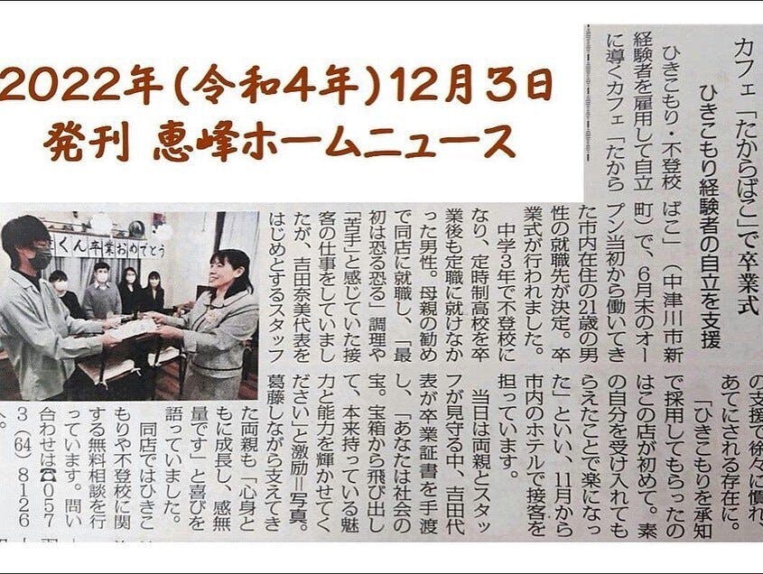 最初はおどおどして、伏し目がちだった引きこもりの方が、カフェでのお仕事を通じてどんどん元気になっていき、仕事を見つけて卒業していきました。