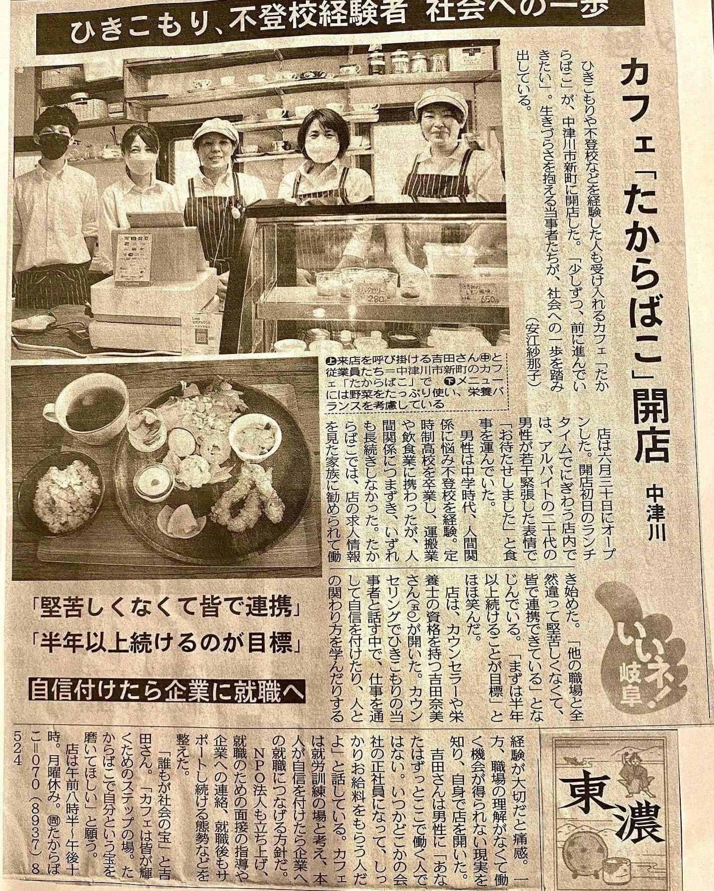 カフェとして、ランチやティータイムの提供を通じて、たくさんの引きこもりの方を支援させていただきました。